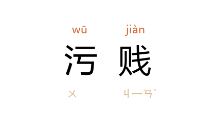 引宋 曾巩 《谢章学士书》:“广听博观,不遗污贱戹辱之士者,此所以无弃士也。”污,一本作“污”。 明 胡应麟 《诗薮·遗逸下》:“北齐 文士,著者三人:邢劭、魏收、祖珽。珽 凶恶污贱,为古今词人之冠, 收 亦亚焉。”清 刘大櫆 《吴节妇传》:“彼非不知其污贱而不可为也,顾有所不能捨者耳。”