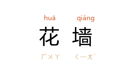 ⒈ 以攀援植物进行绿化的墙面。上段砌成镂空花样的墙。