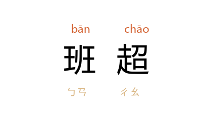 ⒈ 人名。(西元 32~102)字仲升,扶风平陵人,东汉班彪之子,班固之弟,为人有大志,不修细节。明帝时出使西域,平服五十余国,诏以超为西域都护,又以功封为定远侯。