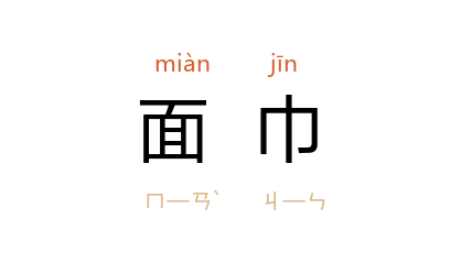 ⒊ 麪巾:亦作“麵巾”。即面筋。参见“麪筋”。