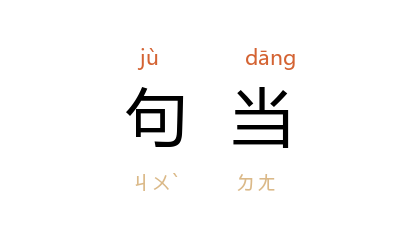 引唐 李德裕 《洺州事宜状》:“伏望速降使赐 宏敬 詔,看彼事宜,如 王釗 出彼未得,且令句当,待 卢钧 到后,令赴闕不迟。”《新唐书·第五琦传》:“帝悦,拜监察御史,句当 江 淮 租庸使。”清 曹寅 《和乔俊三东村书屋》:“教驯麋鹤期同性,句当风花笑独来。”