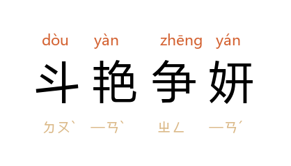 ⒈ 亦作“斗艳争妍”。亦作“鬭艳争妍”。竞相比赛艳丽。