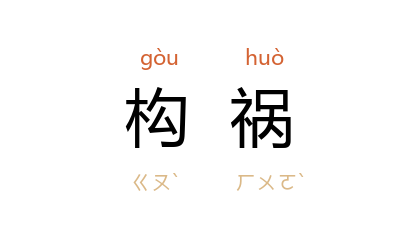 搆禍:1.制造祸乱。 《渚宫旧事》卷二引 汉 赵晔 《吴越春秋》:“王兮王兮听谗邪,枉杀左右寃 伍奢,二允怀恨东奔 吴,创讎搆祸破国都。”