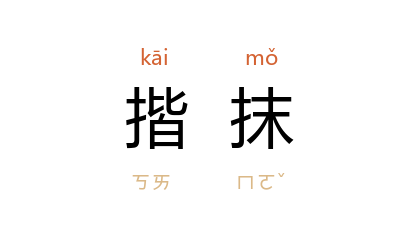 引《水浒传·第六回》:「就灶边拾把草,把春台揩抹了灰尘。」《儒林外史·第五三回》:「安排花盆,揩抹桌椅,教琴棋书画。」