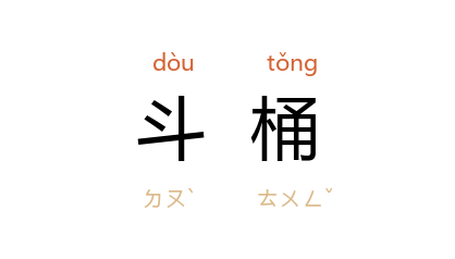 引清 平步青 《霞外攟屑·释谚·斗桶》:“越 人呼挈水之器,有曰斗桶者,以其可容一斗也。”