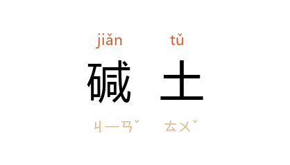⒈ 土壤含有多量碱或交换性钠,致使其反应高至 PH8.5以上的,称为「碱土」。