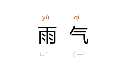 引唐 沉佺期 《乐城白鹤寺》诗:“潮声迎法鼓,雨气溼天香。”宋 苏舜钦 《杭州巽亭》诗:“凉翻帘幌潮声过,清入琴尊雨气来。”元 张养浩 《拟四季归田乐·夏》诗:“溪光林樾润,雨气桑麻香。”