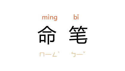 引《南史·卷六七·鲁悉达传》:「尚书令江总抚柩恸哭,乃命笔题其棺头。」南朝梁·刘勰《文心雕龙·养气》:「意得则舒怀以命笔,理伏则投笔以卷怀。」