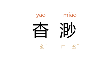 ⒈ 悠远的样子。唐·权德舆〈杂言和常州李员外副使春日戏题〉诗一〇首之四:「佳期远,相见少,试一望,魂杳渺。」也作「杳眇」。