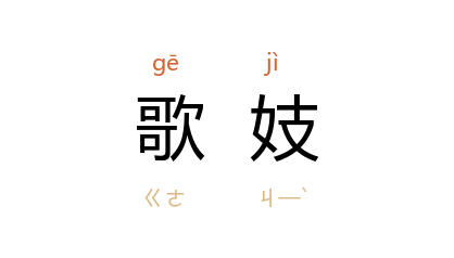 引唐 杜甫 《宴戎州杨使君东楼》诗:“座从歌妓密,乐任主人为。”明 沉德符 《野获编补遗·畿辅·建酒楼》:“既而又增作五楼……而五楼专以处侑酒歌妓者,盖仿 宋 世故事。”朱自清 《桨声灯影里的秦淮河》:“秦淮河 上原有一种歌妓,是以歌为业的。”