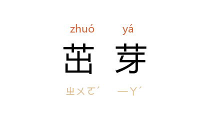 引元 吴澄 《次韵灵兴避暑》:“梦云兰茁芽,惊见梓附桥。”鲁迅 《集外集拾遗补编·看了魏建功君的<不敢盲从>以后的几句声明》附 魏建功 《不敢盲从》:“我们真可怜可惨,虽然不准子弟登台的父兄很多,而一向情愿为艺术尽心,来做先锋的并没有畏缩;这才辟开‘爱美的为艺术的戏剧事业’的新纪元,所谓‘艺术戏剧根苗’始茁芽在沙漠的大地上。”