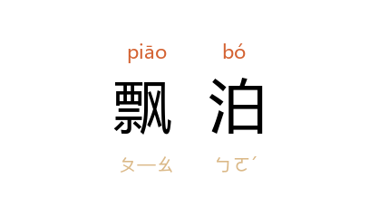 ⒈ 生活不安定,流离失所,有如物之随水飘流,而无定所。也作「漂泊」、「飘薄」。