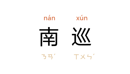 引《书·舜典》:“五月南巡守,至于 南岳。”《宋书·文帝纪》:“昔 汉章 南巡,加恩 元氏。”明 王世贞 《觚不觚录》:“朱成公 扈驾南巡,给舆后,遂赐常乘。”清 王士禛 《过汜光湖怀古》诗:“如何万乘尊,南巡来 建康。;”