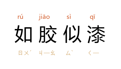 《镜花缘》第六四回:“兼之八个姊妹自从一同赴考,郡县取中之后,真是如胶如漆,就像粘住一般,再也离不开。”