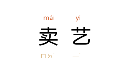 ⒉ 指在街头或娱乐场所表演杂技、武术、曲艺等挣钱。