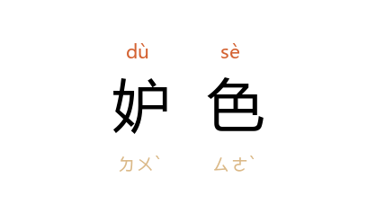 引元 武汉臣 《老生儿》第一折:“你兴心儿妬色。你是个做女的。”《京本通俗小说·西山一窟鬼》:“从嫁 锦儿,因通判夫人妬色,吃打了一顿,因恁地自割杀。”