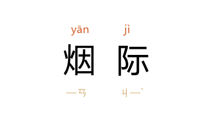 引北齐 刘昼 《新论·通塞》:“入井望天,不过圆盖;登峯眺目,极於烟际。”唐 李峤 《咏绫》:“何当画 秦 女,烟际坐氤氲。”宋 苏辙 《黄楼赋》:“放田渔於江浦,散牛羊於烟际。”元 李存 《送倪东江之上元县主簿》诗:“沙头烟际挹征襟,嚼尽梅花出短吟。”