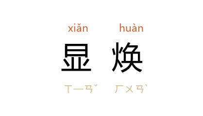 引清 葆光子 《物妖志·兽类·狐》:“门馆清肃,甲第显焕。”《孽海花》第二回:“如今那 圆嶠巷 的 金雯青,也中了状元了,好不显焕!”