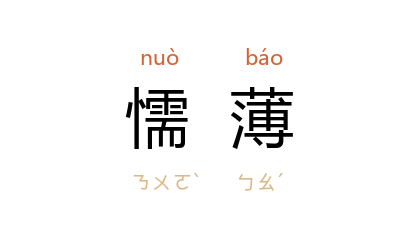 引南朝 宋 鲍照 《临川王服竟还田里》诗:“送往礼有终,事居慙懦薄。”《宋书·沉攸之传》:“詰朝之事,诸人咸谓吾应统之,自卜懦薄,干略不办及卿。今輒相推为统,但当相与勠力尔。”唐 权德舆 《谢除太常卿表》:“书生凡辈,懦薄无堪,生遇昌期,累膺爵秩。”