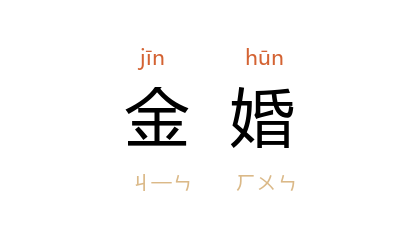 ⒈ 西方风俗,结婚五十周年,称“金婚”。
