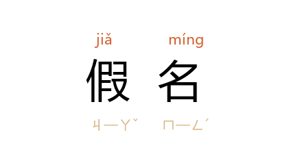 英语false name, pseudonym, alias, pen name, the Japanese kana scripts, hiragana 平假名 and katakana 片假名