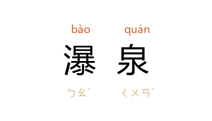 引宋 钱易 《南部新书》辛:“﹝ 中条山 王官谷 ﹞周迴十餘里,泉石之美,冠於一山。北巖之上,有瀑泉流注谷中。”清 杜岕 《雪水茶》诗:“瓢勺生幽兴,簷楹恍瀑泉。”