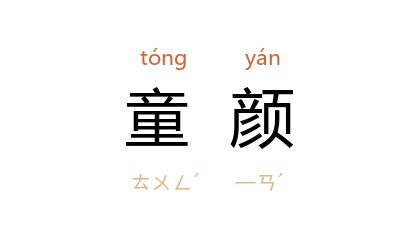 ⒈ 儿童的容颜。亦谓红润如儿童的容颜。