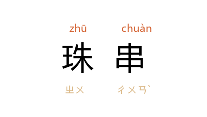 引唐 李商隐 《拟意》诗:“银河扑醉眼,珠串咽歌喉。”元 郑元祐 郯韶 《学诗斋联句》:“响当贯珠串,辙始輳车轨。”