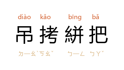 引金 董解元 《西厢记诸宫调》卷八:“有刑罚徒流绞斩,吊拷絣把。设而不用,束杖理民宽雅。”凌景埏 校注:“吊拷,吊起来拷打。絣把,也写作綳把、拼扒、絣扒、掤扒,剥去衣服绷綑。”