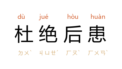 ⒈ 杜绝:堵塞、断绝;患:祸害、祸患。指彻底消除以后可能产生的祸患。