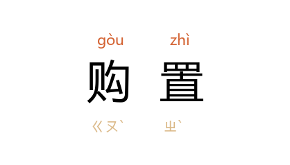 引清 唐才常 《上父书》之七:“况 川中 书籍,多 湖南 所无,装订亦甚精緻,不趁此时购置,更待何时?”鲁迅 《书信集·致陈烟桥》:“美术书总是贵的,个人购置,非常困难。”叶圣陶 《小病》:“为孩子,为用钱,为购置东西,往往彼此意见不合,至于争论起来。”