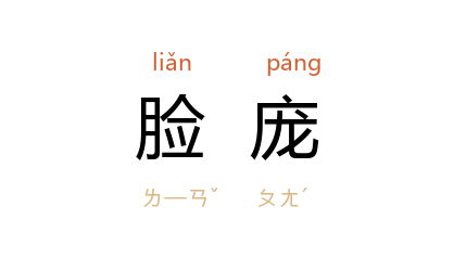 引许地山 《荼蘼》:“宗之 这才站起来,皱一皱他那副冷静的脸庞,跟着来人从林菁底深处走出去了。”杨沫 《青春之歌》第一部第一章:“明月升起来了,月光轻纱似的透过树隙,照着这孤单少女美丽的脸庞。”郭小川 《万里长江横渡》诗:“我们的脸庞是在沐浴着最美好的阳光雨露。”