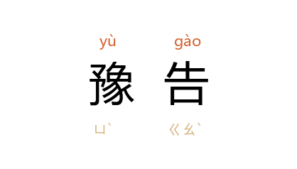 引《周礼·春官·世妇》“宿戒” 汉 郑玄 注:“宿戒,当给事豫告之齐戒也。”《宋书·谢弘微传》:“弘微 疾增剧,輒豫告 文宣。”鲁迅 《书信集·致黄源》:“且曾在第二期《新小说》上豫告。”