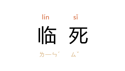 引北齐 刘昼 《新论·贵言》:“临死者谓无良医之药,将败者谓无直諫之臣。”《儒林外史》第六回:“话説 严监生 临死之时,伸着两个指头,总不肯断气。”鲁迅 《且介亭杂文·病后杂谈》:“临死做诗的,古今来也不知道有多少。”