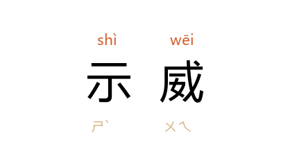 例如:「示威游行」、「示威运动」。