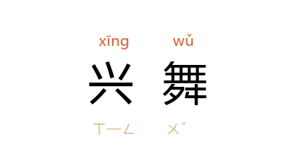 引《周礼·地官·乡大夫》:“五曰兴舞。”王引之 《经义述闻·周官上》:“兴者,作也,起也。 《舞师》:‘凡小祭祀则不兴舞’, 郑 彼注曰:‘兴犹作也。’ 皇侃 《论语》疏,谓兴舞为射容与乐舞趣兴相会,非是。”《诗·小雅·伐木》“蹲蹲舞我” 汉 郑玄 笺:“为我兴舞蹲蹲然。”