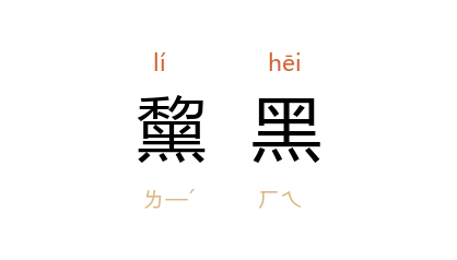 ⒈ 黑色。也作「黎黑」。
