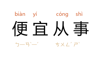 亦作“便宜行事”。 宋 叶适 《奏议·纪纲四》:“始委 张浚 以 川、陕,而宣抚、处置之名立焉,便宜行事之命出焉。”