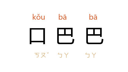 ⒈ 亦作“口吧吧”。亦作“口叭叭”。