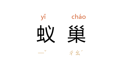 ⒈ 一群蚂蚁的住处,一个蚁山或蚁窝。