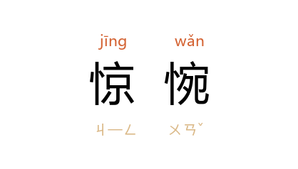 引晋 干宝 《搜神记》卷十二:“忽见屋中有大缸,妇试发之,见有大蛇。妇乃作汤灌杀之。及家人归,妇具白其事,举家惊惋。”《旧唐书·后妃传上·玄宗杨贵妃》:“乃引刀剪髮一繚附献, 玄宗 见之惊惋。”明 归有光 《与嘉定诸友书》:“里中人争言 张烈妇 事,惊惋累日。”