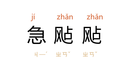引元 关汉卿 《单刀会》第四折:“昏惨惨晚霞收,冷颼颼 江 风起,急颭颭帆招惹。”元 尚仲贤 《气英布》第一折:“他可以忒不合,他可以忒放泼,恰便似一个飞蛾儿急颭颭来投火。”
