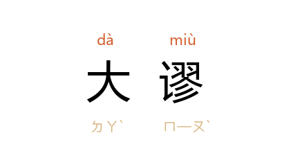 引宋 苏轼 《闻子由为郡僚所捃恐当去官》诗:“寧知事大繆,举步得狼狈。”清 和邦额 《夜谭随录·堪舆》:“某顿足曰:‘此大繆矣!’”清 俞樾 《古书疑义举例·助语用不字例》:“不者弗也,自古及今,斯言未变,初无疑义;乃古人有用‘不’字作语词者,不善读之,则以正言为反言,而於作者之旨大谬矣。”
