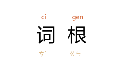⒈ 表达语词基本观念的词素,为语词的核心。如英语international一词,除去前缀inter-及形容词词尾-al,所剩nation,乃其词根。