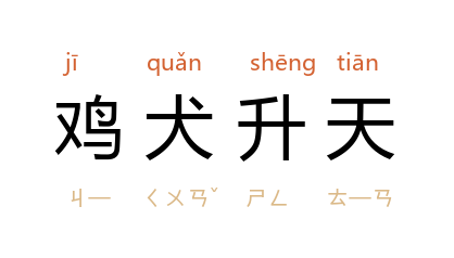 引比喻依附于有权势的家人、亲友而得势。语出 汉 王充 《论衡·道虚》:“淮南王 刘安 坐反而死,天下并闻,当时并见,儒书尚有言其得道仙去,鸡犬升天者。”