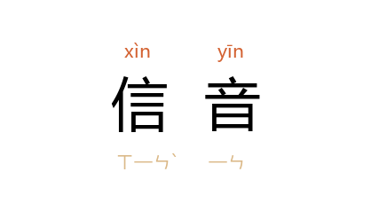 引宋 周邦彦 《解连环》词:“怨怀无託。嗟情人断絶,信音辽邈。”元 张寿卿 《红梨花》第三折:“自从那夜嬷嬷将小娘子唤将回去,并无一个信音。”《警世通言·玉堂春落难逢夫》:“三更鼓做了这个梦,半夜搥牀捣枕哭到天明,埋怨着我不接三官,今日特来问问三舅的信音。”