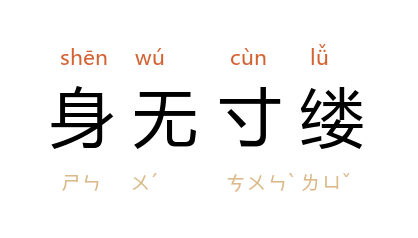 ⒈ 谓身上没有一寸线。形容极其穷困。
