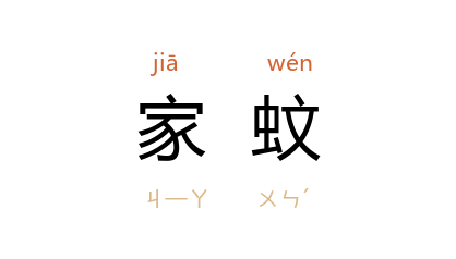 ⒈ 动物名。昆虫纲双翅目蚊科。雌性具吸血性,且为病原体的媒介昆虫。如传染丝虫症、日本脑炎等疾病。