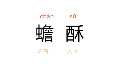 ⒈ 大蟾蜍等耳后腺及皮肤腺的白色分泌物。有毒。干燥后供药用,主治痈毒疔疮、咽喉肿痛等症。