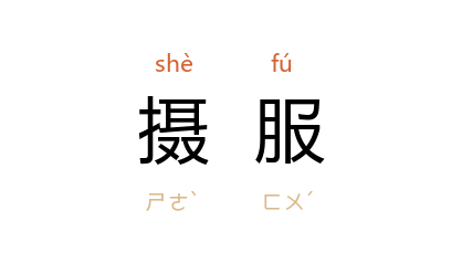 ⒉ 亦作“摄伏”。威慑使之屈服;畏惧屈服。摄,通“慑”。